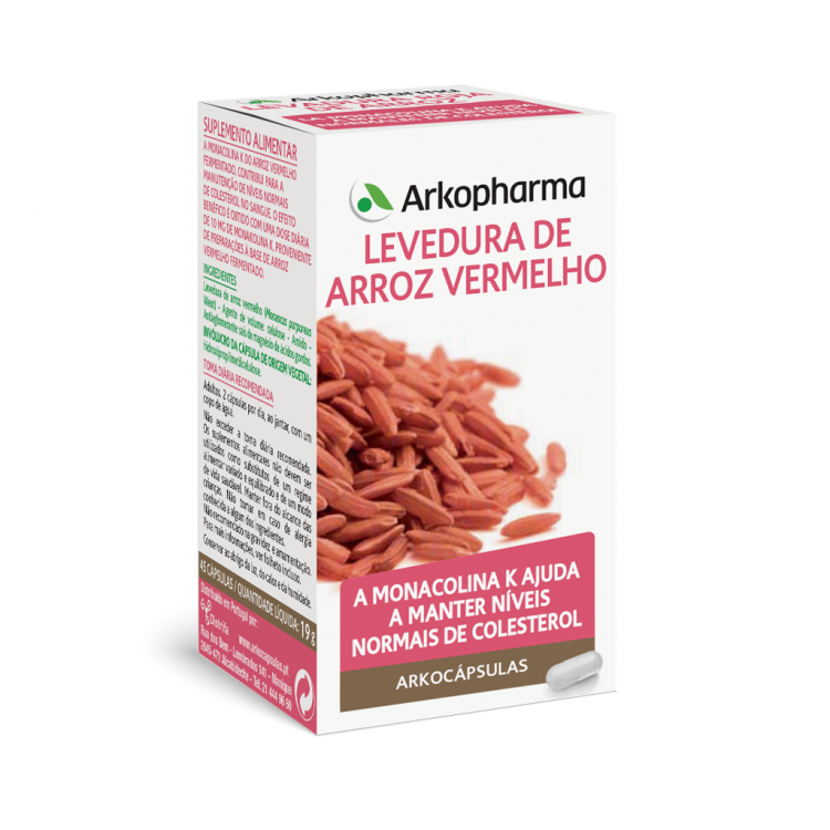 [METABOLISMO] Suplemento alimentar com Monacolina K proveniente do Arroz Vermelho fementado, que contribui para a manutenção de níveis normais do colesterol no sangue. Composição por 1 cápsula: 54mg de Levedura de Arroz Vermelho, da qual 2,9mg monacolinas. Tomar 1 cápsula por dia, ao jantar, com um copo de água.