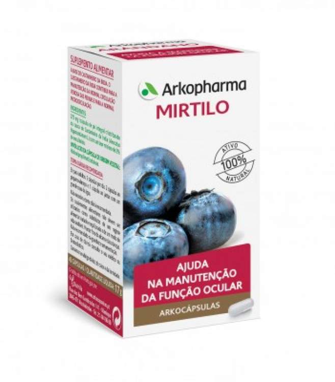 [BEM-ESTAR E CIRCULAÇÃO] Suplemento alimentar à base de Mirtilo rico em antioxidantes e cuja ação sobre a circulação venosa contribui para a manutenção da função ocular. Cada cápsula contém 380mg de pó integral criotriturado de Mirtilo (Vaccinium myrtillus L.) com um teor mínimo de 0,5% de taninos (expressos em pirogalol). Tomar 3 cápsulas por dia, às refeições, com um copo de água. Caso seja necessário, pode aumentar a toma para 5 cápsulas por dia.