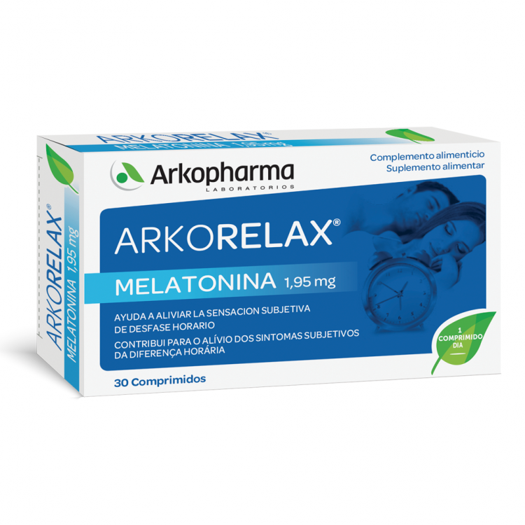 ARKORELAX Melatonina 1,95 mg é um suplemento alimentar à base de melatonina. A melatonina contribui para o alívio dos sintomas subjetivos da diferença horária. TOMA DIÁRIA RECOMENDADA: Tomar 1 comprimido antes de se deitar no primeiro dia da viagem e nos 4 dias seguintes após a chegada ao destino. O efeito benéfico é obtido com um consumo mínimo de 0,5 mg de melatonina.