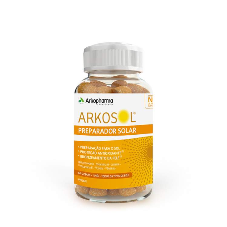Suplemento alimentar concentrado em ingredientes activos que ajudam a preparar a pele para a exposição solar, contribuem para a proteção das células contra as oxidações indesejáveis, graças ao Selénio e à Vitamina E e para a normal pigmentação da pele, graças ao cobre. Contém por 2 gomas, 3mg de Betacaroteno, 500 µg RE Equivalente a Vitamina A, 4mg de Luteína, 2,4mg de Vitamina E, 0,25mg de Cobre e 50 µg de Selénio. Tomar 2 gomas por dia, a partir dos 15 anos, pelo menos 15 dias antes da exposição ao sol ou aos UVA artificiais.