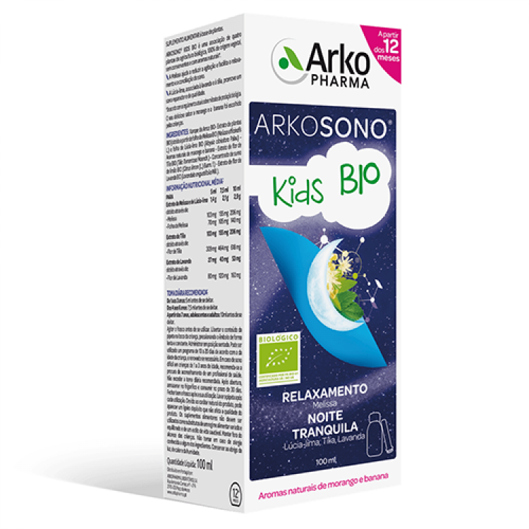 [Sono e Stress] Suplemento alimentar para ajudar a relaxar, reduzir a agitação e promover um sono reparador e de qualidade para crianças a partir de 1 ano de idade. Fórmula sem melatonina, com uma associação de quatro plantas de agricultura biológica, 100% de origem vegetal, sem conservantes e com aromas naturais. Contém Xarope de Arroz bio, Melissa, Lúcia-Lima, Lavanda, Tília, Aromas naturais de Morango e Banana e Concentrado de sumo de Limão. Posologia: De 1 aos 3 anos, 5 ml antes de se deitar. Dos 4 aos 6 anos, 7,5 ml antes de se deitar. A partir dos 7 anos, (crianças, adolescentes e adultos), 10ml antes de se deitar.