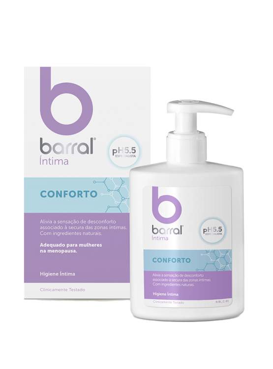 BARRAL Íntima Conforto é um gel de higiene íntima com pH 5.5 e uma formulação com extrato de Malva 100% natural que respeita e hidrata a zona íntima, proporcionando uma agradável sensação de alívio e conforto. Alivia a sensação de desconforto e secura da zona íntima. Adequado para a higiene íntima diária, na menopausa e pós -menopausa e em situações de alteração do pH vulvovaginal (coadjuvante de tratamento infeciosos).