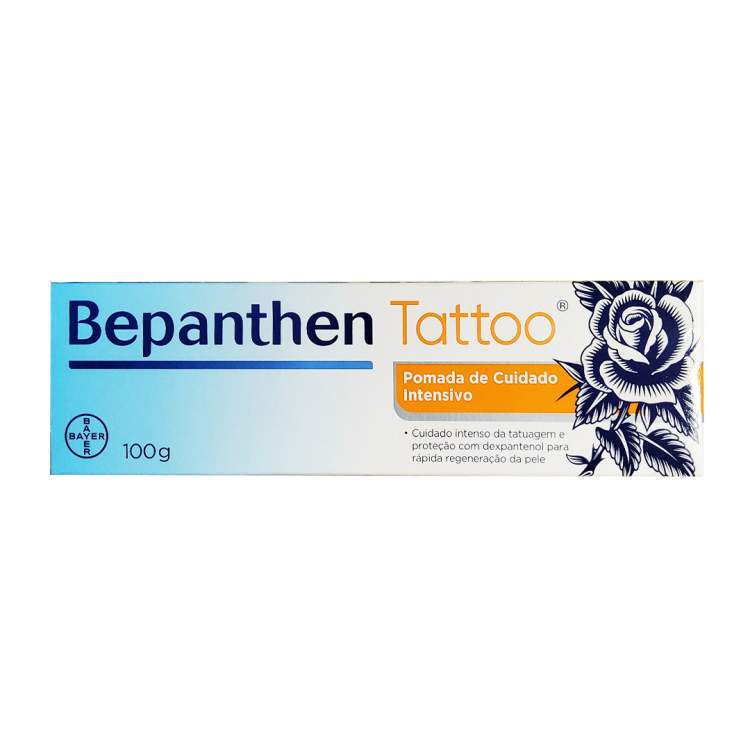 Bepanthen Tattoo é uma pomada de cuidado intensivo, para proteção e rápida regeneração da pele, em especial da pele tatuada. A sua fórmula com dexpantenol cria uma camada protetora natural e respirável que fornece o nível de hidratação necessário para ajudar a pele a regenerar desde o seu interior e para estabilizar a função natural de barreira cutânea. A pomada forma uma camada fina transparente, sem deixar uma película branca espessa, e não precisa de ser limpa. Aplicar uma camada fina, em cada tatuagem, 4 vezes ao dia para assegurar bons resultados.