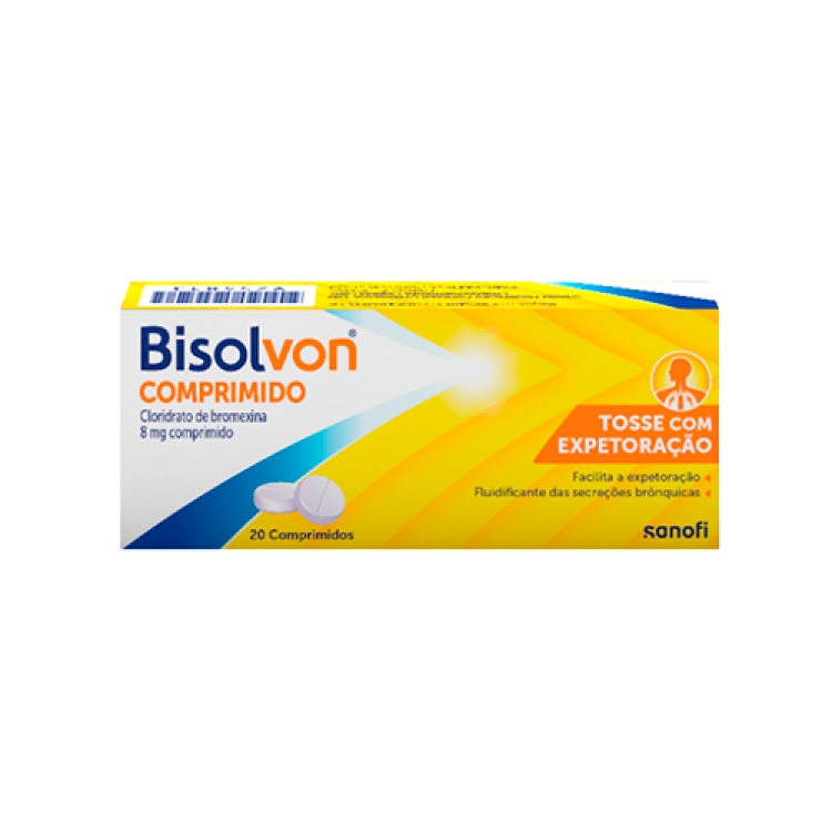 Tome Bisolvon® Comprimidos se a tosse com expetoração perturbar o seu dia e precisar de uma solução prática. Bisolvon® Comprimidos, fáceis de engolir e cómodos para transportar. Bisolvon® Comprimidos está indicado como adjuvante mucolítico do tratamento antibacteriano das infeções respiratórias em presença de hipersecreção brônquica. Bisolvon® Comprimidos reduz a viscosidade das secreções brônquicas. O muco torna-se mais fluido. Bisolvon® Comprimidos tem um efeito estimulador sobre a mucosa brônquica para produzir secreções brônquicas mais fluidas. Além disso, fica facilitada a drenagem do material tensioativo dos alvéolos pulmonares e dos brônquios. Juntamente com a ativação do epitélio ciliar da mucosa brônquica, estes mecanismos mantêm e melhoram a capacidade de autopurificação das vias aéreas. Facilita e acelera a eliminação do muco dos alvéolos pulmonares com a sua ação fluidificante e expetorante. Adultos e crianças com mais de 12 anos: 1 comprimido (8 mg) 3x/dia. Cada comprimido contém 8 mg de Cloridrato de Bromexina. Contém lactose mono-hidratada. Via Oral. Manter fora do alcance e da vista das crianças. Conservar na embalagem de origem. Conservar a temperatura inferior a 25°C.