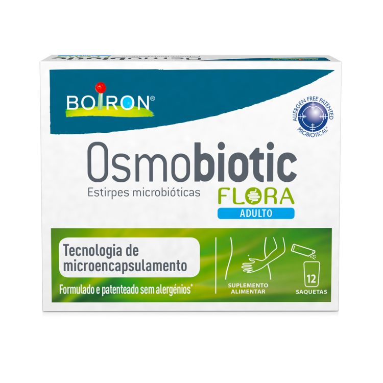 Osmobiotic Flora Adulto, formulado com 3 biliões de Lactobacillus casei e Bifidobacterium Lactis por saqueta, destina-se a pessoas que sofrem de inchaço, dor abdominal e prisão de ventre/obstipação. Para evitar a degradação das estirpes microbióticas em contato com a acidez gástrica, foi desenvolvida uma tecnologia de microencapsulamento. Consiste em revestir as estirpes com uma fina camada lipídica para que resistam à humidade e aos sucos presentes no estômago. Assim, um maior número de estirpes microbióticas chegam ao intestino. Osmobiotic® Flora Adulto (a partir dos 16 anos) Combinação de duas estirpes: Bifidobacterium animalis subsp . lactis BS01 e Lactobacillus casei LC03.
