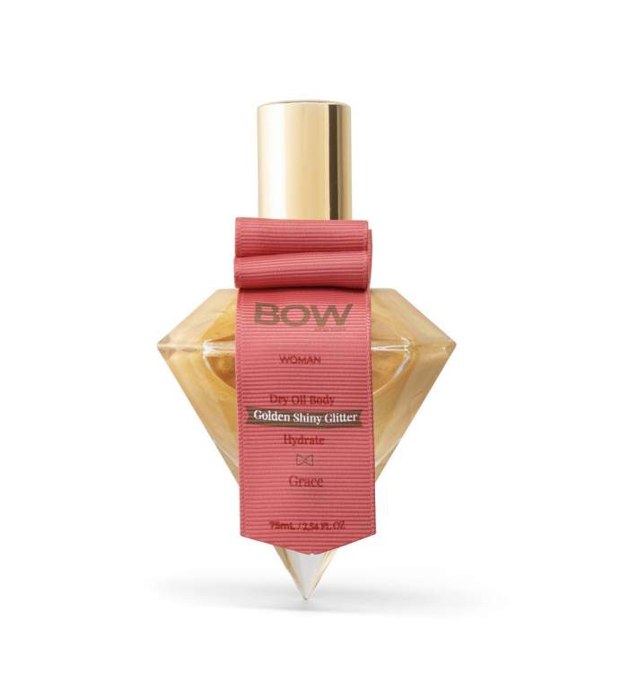 Óleo seco dourado com Glitter, um tratamento diamante à base de óleos hidratantes que reparam e suavizam a pele, com partículas cintilantes que iluminam a sua pele e lhe confere um toque acetinado. Formulado com Óleo de coco, Óleo de Jojoba Golden, Óleo de Argão, Óleo de Amêndoa Doce, Óleo de Girassol e Óleo de Graínha de Uva. Textura leve e não gordurosa. Aconselha-se aplicar na mão e de seguida espalhar no corpo, para não sujar a roupa.