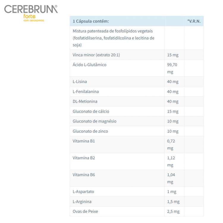 Suplemento alimentar indicado para reforçar o organismo em caso de sobrecarga de trabalho, stress laboral ou baixa produtividade. Combina a lecitina de soja com fosfatidilcolina, extractos de plantas (Vinca minor), aminoácidos, vitaminas do Complexo B e minerais para otimizar a performance cerebral. Fórmula eficaz com cerosomas que asseguram o transporte dos micronutrientes ao interior das células. Ajuda a reduzir o cansaço e fadiga. Tomar 1 cápsula antes das principais refeições.