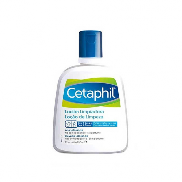 Cetaphil Loção de Limpeza limpa, remove maquilhagem, sujidade e outras impurezas sem secar ou irritar a pele ao mesmo tempo que a hidrata. Esta fórmula de limpeza cremosa, sem sabão, agora com uma combinação de niacinamida (vitamina B3), pantenol (pró-vitamina B5) e glicerina, protege contra os 5 sinais de pele sensível: barreira cutânea fragilizada, secura, irritação, rugosidade e sensação de repuxamento. Indicado para a pele sensível, normal a seca, do rosto ou corpo. Pode ser utilizada em bebés. Não comedogénico. Sem perfume.