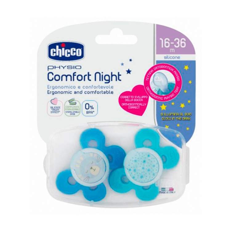 CHICCO Chupetas Physio Comfort Night Azul 16-36M - 2un