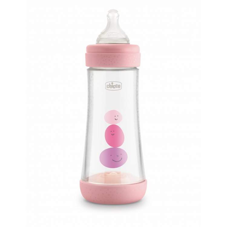 Biberão anticólicas Perfect5 4m+ 300ml fluxo rápido. Adapta-se ao ritmo de sucção individual de cada bebé. O Biberão Perfect 5 é o único biberão revolucionário biofuncional anticólicas com o sistema inovador intui-flow™: a ação combinada da tetina Physio e da Membrana Equilibrium promove a sucção fisiológica e intuitiva e suporta naturalmente o ritmo e a intensidade de sucção de cada bebé, permitindo uma alimentação contínua e sem interrupções ou faltas de ar. A membrana equilibrium permite que o ar entre pela base do biberão, sem se misturar com o leite, por forma a evitar que este entre na barriga do bebé, reduzindo assim a irritabilidade, regurgitação, gases e cólicas. A membrana anticólica é flexível e dinâmica adaptando-se às diferentes intensidades de sucção através dos micromovimentos que regulam a intensidade do leite de acordo com a sucção do bebé, de uma forma imediata e constante. Tetina Physio: • Simétrica, alongada e achatada, simula o seio materno, para promover a ação peristáltica natural da amamentação. • Silicone suave e extra macio, o acabamento especial confere à tetina uma sensação aveludada e macia, semelhante à pele da mãe, para uma sucção ainda mais natural e confortável. • 4 Fluxos diferentes disponíveis (normal, médio, rápido e fluxo papa) para acompanhar o bebé nas diferentes fases de desenvolvimento. A tetina adapta-se na perfeição à boca do bebé, respeitando o movimento natural de sucção. Macia e elástica com acabamento Soft Sense promove uma sensação suave e natural durante toda a alimentação. Uma alimentação calma, tranquila e sem interrupções ajuda a promover o bem-estar físico e psicológico do bebé. Para além disso, ajuda a neutralizar o fenómeno fisiológico das cólicas e reduzir a ingestão de ar durante a alimentação, uma vez que não há criação de vácuo no interior da tetina durante a sucção. A base é removível, permitindo uma lavagem rápida e prática. Biberão em polipropileno, 0%BPA.