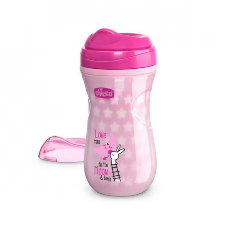 Copo anti-fugas de parede dupla, indicado para bebés a partir dos 14 meses que é fácil de segurar e brilha no escuro. Bico ergonómico é moldado para estabilizar o lábio inferior e a cavidade superior para o nariz. O bico é descentralizado para promover uma postura adequada do pescoço ao beber. Válvula removíve que torna o copo 100% à prova de fugas sem comprometer a facilidade de beber do bebé com e sem válvula.
