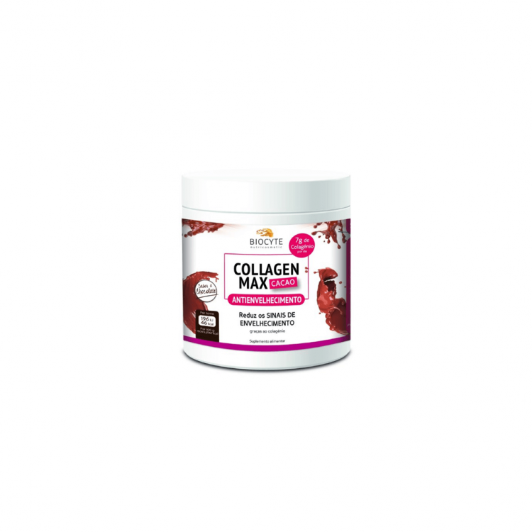 O colagénio é um dos principais "blocos de construção" da pele. Trata-se do maior componente da sua estrutura e assegura a sua densidade e resistência. Com o tempo a produção de colagénio diminui e a pele começa a perder a firmeza e as rugas aparecem. Collagen Max Cacau combate os sinais de envelhecimento a partir de dentro! Possui efeitos antienvelhecimento e antioxidante. Protege as células e contribui para uma formação normal de colagénio.