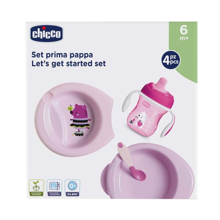 O conjunto contém tudo o que o bebé precisa para a hora da refeição, acompanhando o seu crescimento. Contém: • Copo de aprendizagem, ideal para estimular o desenvolvimento das capacidades do bebé e ajudá-lo a aprender a beber de forma autónoma. O seu formato especial facilita o posicionamento correto dos lábios e promove uma postura adequada do pescoço enquanto bebe. O bico ergonómico é suave e resistente a mordidas. Com válvula anti fuga, e pegas removíveis. • Primeira colher, macia e com ponta flexível • Prato de papa quente e prato simples encaixam perfeitamente para manter a comida do bebé quente durante mais tempo. A sua forma ergonómica torna-o fácil de agarrar, mesmo com apenas uma mão e a base antiderrapante garante que o prato se mantém no lugar. 0% BPA