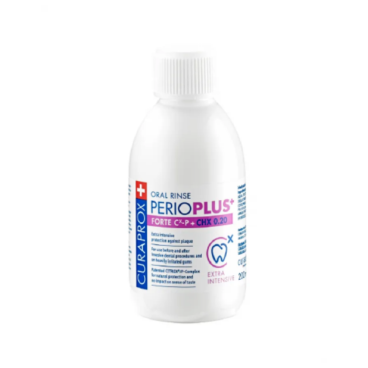 Com a maior concentração de CHX, o Perio Plus+ Forte oferece uma excelente proteção contra bactérias na cavidade oral, prevenindo a formação e a acumulação da placa bacteriana. Perio Plus+ Forte é ideal para utilizar durante curtos períodos, antes e após procedimentos dentários invasivos. O efeito antibacteriano mais poderoso Concentração de clorohexidina: 0.2%. Perio plus forte é perfeito para uso a curto prazo antes e depois de procedimentos dentários invasivos. Fiável. E altamente eficaz.