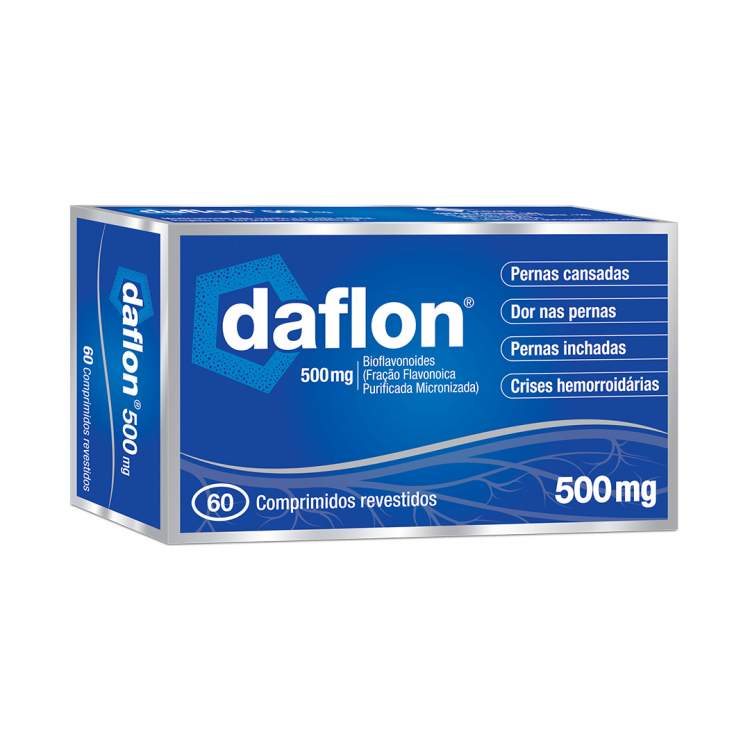 Daflon é um medicamento indicado no tratamento de distúrbios da circulação venosa (pernas pesadas, dores, inchaço) e no tratamento dos sinais funcionais relacionados com a crise hemorroidária. Composição por comprimido: 450mg de Diosmina e 50mg de Flavonoides expressos em hesperidina. Posologia: Posologia habitual: 2 comprimidos por dia. Na crise hemorroidária: nos 4 primeiros dias: 2 comprimidos 3 vezes ao dia; nos 3 dias seguintes: 2 comprimidos 2 vezes ao dia; em seguida voltar à posologia de manutenção: 2 comprimidos por dia.