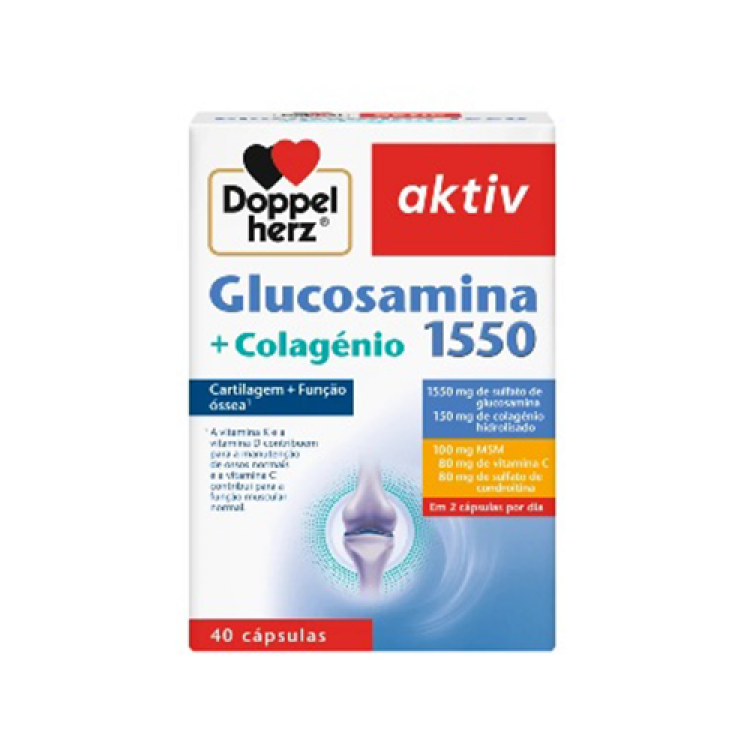 1550 mg de sulfato de glucosamina, 150 mg de colagénio hidrolisado, 100 mg MSM, 80 mg de vitamina C e 80 mg de sulfato de condroitina
