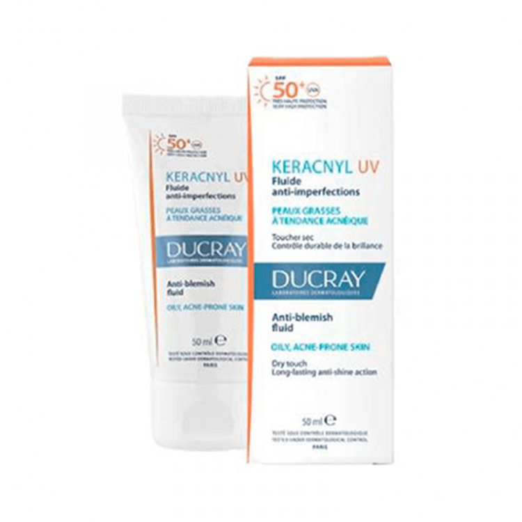 Fluido anti-imperfeições que oferece proteção solar SPF50+, com filtros UVA/UVB patenteados, para peles oleosas com tendência acneica. Impede as recidivas e elimina as imperfeições graças à ação combinada patenteada da Mirtacina® e do Celastrol. Fórmula resistente ao suor, de rápida absorção que oferece um acabamento mate, de toque seco e controlo de brilho duradouro.