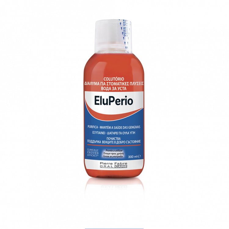 O colutório ELUPERIO ajuda a combater a formação da placa bacteriana e a prevenir o desenvolvimento ou agravamento dos problemas das gengivas, contribuindo para uma melhor saúde oral. ELUPERIO pode ser utilizado como complemento em tratamentos periodontais ou implantares. Limpeza Sem álcool A partir dos 6 anos. Aplicação: Duas vezes por dia, após a escovagem dos dentes, bochechar com 15 ml de ELUPERIO durante 30 segundos.