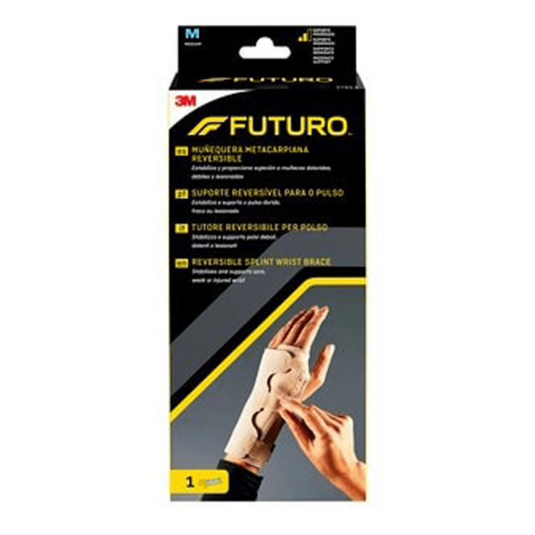 O Suporte de Pulso com Tala Reversível FUTURO™ proporciona suporte confortável e estabilizador para lesões comuns, tais como entorses, luxações e sintomas da Síndrome do Canal Cárpico*. Este suporte de pulso inclui um estabilizador palmar para apoio adicional e um design prático da manga para pôr e tirar facilmente. Estas tiras ajudam a conseguir o nível de compressão e suporte pretendido e o design permite manter a mobilidade total dos dedos. Sinta a facilidade de utilização do Suporte de Pulso com Tala Reversível FUTURO™. Ideal para: Suporte para lesões comuns, como entorses, distensões e sintomas da Síndrome do Canal Cárpico. O estabilizador palmar ajuda a proporcionar estabilidade moderada. Pode ser usado no pulso esquerdo ou direito. Utilização prevista: Proporcionar suporte de pulso rígido, fraco ou lesionado,