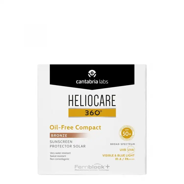 Fotoimunoproteção diária com cor, unificadora do tom de pele, em formato compacto Fotoprotecção facial muito elevada para prevenir os danos causados pelo sol e os sinais de envelhecimento associados, como as manchas. Disponível em duas cores (beje e bronze), esta fórmula uniformiza o tom da pele e dissimula as manchas e imperfeições. Textura oil-free, adequado para todos os tipos de pele, incluindo a pele sensível. Facilmente espalhável e com um acabamento mate, o formato compacto permite a portabilidade e facilita a reaplicação necessária para as rotinas de proteção solar. Fórmula que protege contra as quatro radiações, UVB, UVA, Visível e Infravermelhos. Com Fernblock®, um extrato do feto Polypodium Leucotomos que proporciona propriedades antioxidantes e ajuda a prevenir e reparar os danos causados pela radiação solar. * Reforçado com Extrato de Chá Verde e Óxido de Ferro, o que aumenta a sua capacidade de prevenção de manchas.