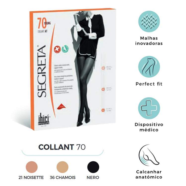 Embalagem com 1 par de collants de densidade da malha 70 e tamanho 2. Cor: Nero. Compressão: 11/14 mmHg.