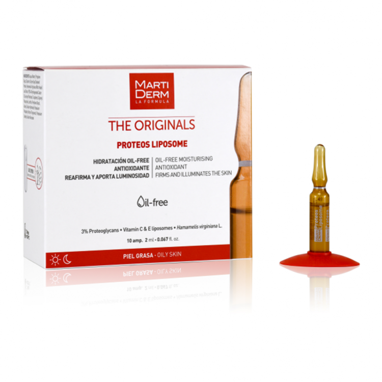 Ampolas para para prevenir e tratar os sinais do envelhecimento, com uma fórmula oil-free com proteoglicanos, vitamina C + E lipossomada e extrato de hamamélis que fornecem desde a primeira aplicação hidratação, firmeza e luminosidade à pele. Aplicação: Agitar a ampola, abrir com o sistema "easy open", colocar a ponta doseadora, verter metade do conteúdo na mão e aplicar. Conserve o restante para a próxima aplicação.