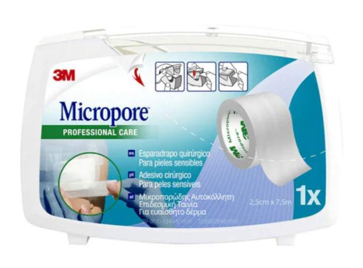 3M Micropore Adesivo é altamente respirável, hipoalergénico, não contém látex, fixa mesmo em pele húmida e é suave para a pele. Fita médica de papel multiusos e com um nível de adesão que respeita a sua pele.