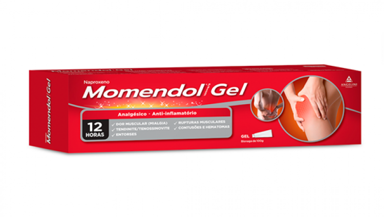 O Momendol Gel 100mg/g pertence à classe dos analgésicos anti-inflamatórios não esteróides para uso tópico. O Momendol gel é utilizado para o tratamento local de dores musculares e articulares, nomeadamente: dores musculares (mialgia), dores lombares, torcicolo, inflamação da bolsa sinovial na proximidade de uma articulação ou tendão (bursite), inflamação do tendão (tendinite), inflamação da manga sinovial que circunda os tendões (tendossinovite), inflamação dos tecidos em torno de uma articulação (periartrite), distensão muscular, contusões e hematomas. O Momendol gel pode ser utilizado também como coadjuvante na reabilitação, na sequência de traumas e/ou cirurgia ortopédica. Consulte o seu médico em caso de persistência ou agravamento dos sintomas ao fim de 7 dias. O princípio activo é naproxeno a uma concentração de 10% (1 g de produto contém 100 mg de naproxeno). Os outros componentes são: álcool isopropílico, trolamina, glicerol, hidroxietilcelulose, hidróxido de sódio, fragrância contendo mentol e eucaliptol, água purificada