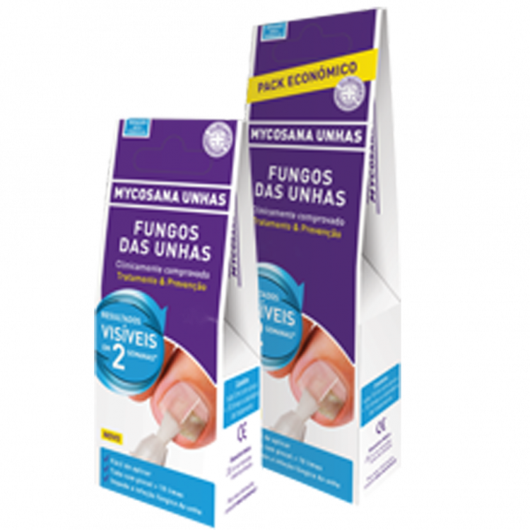 Mycosana unhas é a primeira linha de tratamento para micoses superficiais de unhas das mãos e pés. A sua ação específica impede rapidamente o desenvolvimento dos fungos mais comuns responsáveis pelas micoses das unhas. Penetra na unha, estabilizando-a. A unha fica protegida e regenera-se. A formação de uma barreira protetora ajuda a evitar a propagação da infeção para outras áreas. Mycosana Unhas tem eficácia comprovada contra os fungos das unhas. É uma solução fácil e rápida: 92% dos participantes de uma pesquisa feita junto dos consumidores referiu melhoria da superfície da unha em 2 semanas.