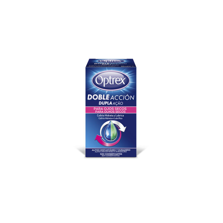 Optrex Colírio Dupla Ação Olhos Secos tem uma fórmula dupla ação sem conservantes especialmente desenvolvida para hidratar os olhos de forma instantânea e lubrificar para um alívio duradouro. Pode ser utilizado com lentes de contacto. Contém hidroxipropilmetilcelusose e hialuronato de sódio. Adequado para uso diário.
