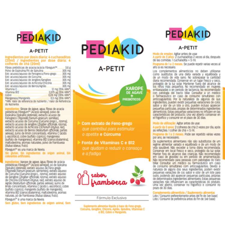 Suplemento alimentar com uma combinação de xarope de agave + fibra prebiótica de acácia que contribui para estimular o apetite e reduzir o cansaço e fadiga. Formulado com Feno-grego, Cúrcuma, Gengibre, Chicória, Agrião, Spirulina, Vitaminas C e B12, Cobre e Manganês.