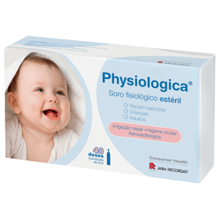 Soro fisiológico estéril indicado para irrigação nasal, higiene ocular, aerossolterapia e limpeza das fossas nasais. Physiologica é uma solução estéril composta por cloreto de sódio 45 mg e água purificada q.b.p. 5 ml.