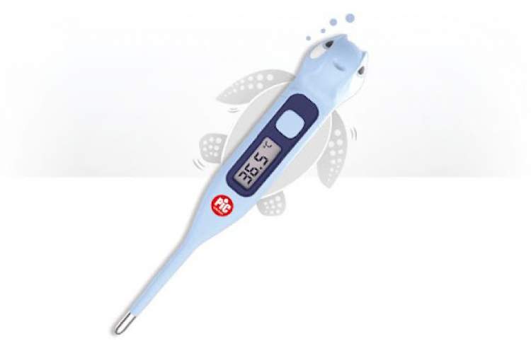 O termómetro-tartaruguinha amigo dos pequeninos. É um termómetro digital com a forma simpática de uma tartaruga. Mede a temperatura axilar, oral ou retal com facilidade e rapidez: tempo de medição entre os 60 e os 120 segundos. O seu visor é de fácil leitura, memoriza a última medição e emite um sinal sonoro diferente caso o resultado da medição seja uma temperatura superior a 37,8 °C. Possui ainda uma bateria duradoura que permite pelo menos 1.000 medições, sendo fácil a sua substituição. Este termómetro possui uma cobertura plástica, que protege a sonda entre as medições. O produto vem acondicionado numa embalagem de cartão.