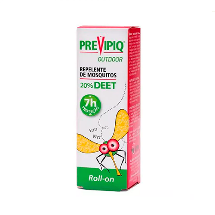 Previpiq® Outdoor Roll-on proporciona em média 7 horas de proteção contra as espécies de mosquitos mais comuns. Biocida com 20% DEET. Para algumas espécies de mosquitos tropicais o tempo de proteção pode ser mais curto. Não utilizar em crianças com menos de 13 anos. Evitar o contacto do produto com os olhos, membranas mucosas e zonas de pele ferida.