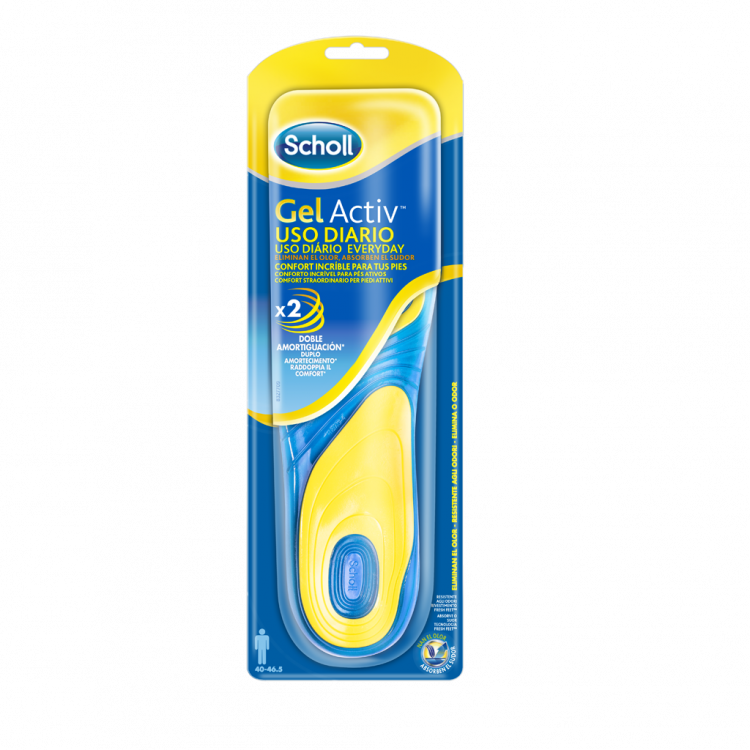 As palmilhas Scholl GelActiv™proporcionam uma absorção dos impactos e uma proteção superior quando comparada com uma não utilização. A forma das palmilhas ajuda a reduzir a pressão excessiva a que submetemos os nossos pés através da tecnologia GelActiv™. Conforto em gel para qualquer tipo de calçado. Para todos os dias. Quer seja para aproveitar mais um dia de compras, desfrutar de um passeio em família ou de uma rápida caminhada no quarteirão – as novas palmilhas Scholl suportam os seus pés, para que se sinta confortável ao longo de todo o dia.