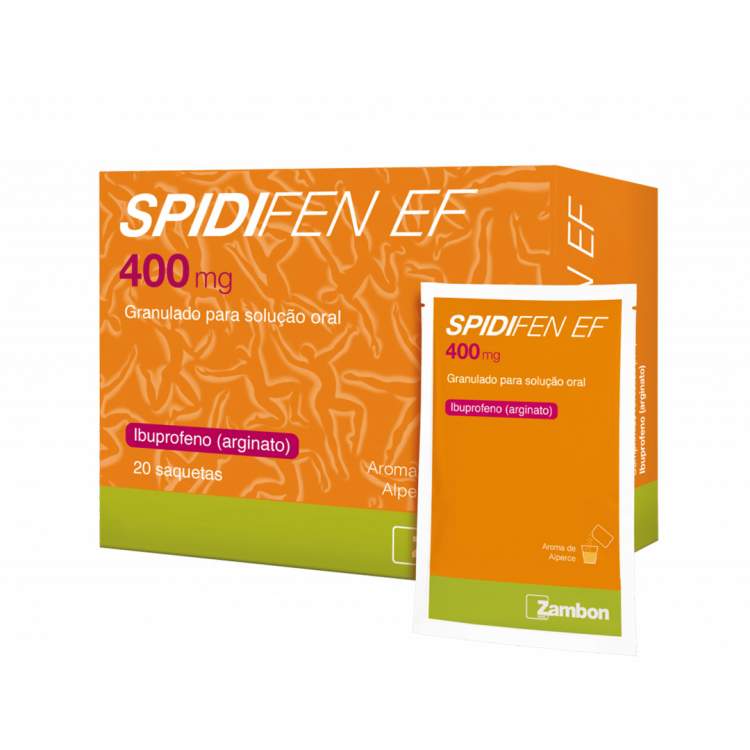 O Spidifen EF é um medicamento não sujeito a receita médica de venda exclusiva em farmácia com ação analgésica e anti-inflamatória, que alivia a dor e reduz a inflamação. Está indicado para o tratamento da dor de diversas origens: dor de cabeça e enxaquecas, dor de dentes, dores menstruais, nevralgia, dor reumática, dor muscular ou sintomas de febre e gripe. A absorção é 3x mais rápida do que a do Ibuprofeno tradicional graças à Arginina, um excipiente que proporciona uma absorção mais rápida do Ibuprofeno e a consequente redução do tempo de contacto com a mucosa gástrica, comparativamente às fórmulas convencionais. Para mais informações, consulte Ibuprofeno e Arginina. O ibuprofeno é uma das moléculas mais bem toleradas dentro do grupo dos AINE a nível do trato gastrointestinal. Está indicado em adultos e adolescentes com mais de 12 anos de idade.