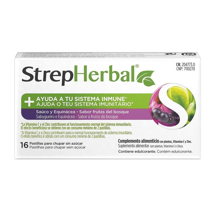 Suplemento alimentar em pastilhas para chupar, que contribui para o normal funcionamento do sistema imunitário. Ajuda ainda a acalmar a garganta irritada. Contém (por 2 pastilhas) 80mg de Vitamina C, 2,3mg de Zinco, 30mg de Extrato de Equinácea e 30mg de Extrato de Sabugueiro. Chupar 2 pastilhas por dia para obter o efeito benéfico.