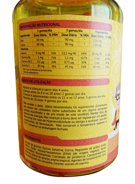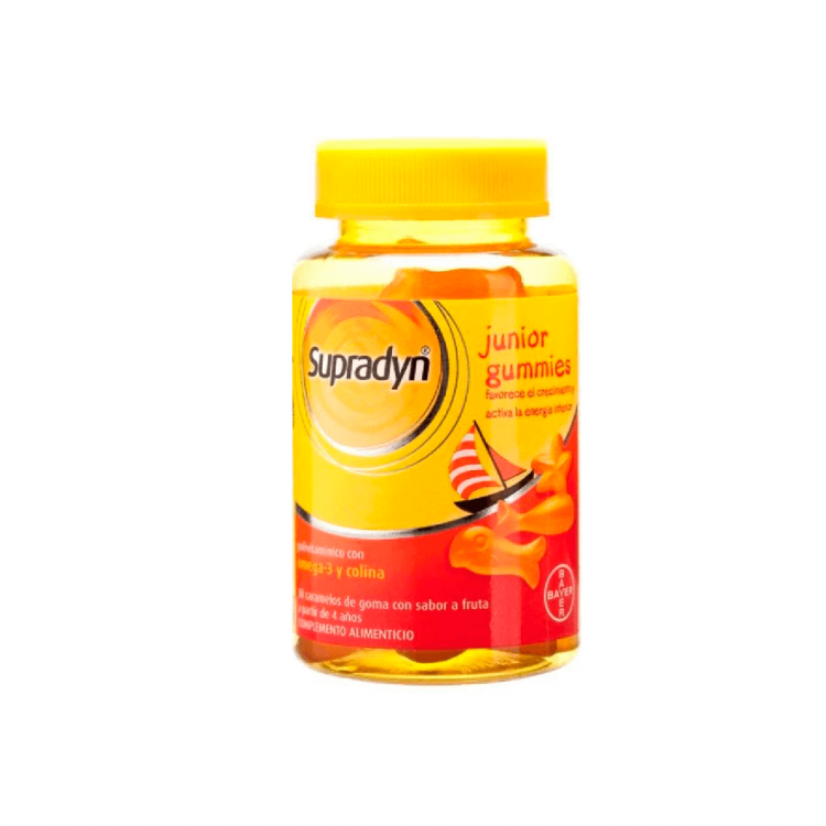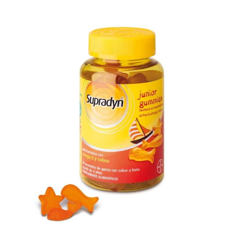 O multivitamínico Supradyn Junior Gummies ajuda os seus filhos em períodos de esforço físico e mental, de forma a atingirem todo o seu potencial. Cada goma de Supradyn Junior Gummies contém Colina e ainda Ómega-3 (DHA), que contribui para uma normal função cerebral. A vitamina C contribui para o normal funcionamento do sistema nervoso e a vitamina B6 contribui para uma normal função psicológica e para a redução do cansaço e da fadiga.