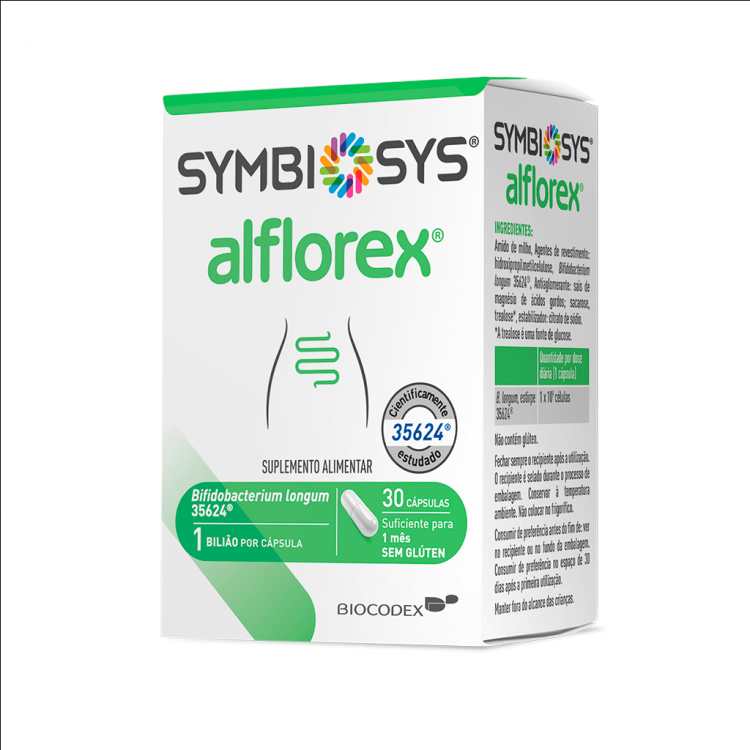 Symbiosys Alflorex® é um suplemento alimentar desenvolvido para o seu equilíbrio interior, especialmente em caso de desconforto gastrointestinal recorrente. Nem todas as estirpes bacterianas são iguais, e cada estirpe é específica, mesmo dentro do grupo das bifidobacterias. SYMBIOSYS Alflorex® é o único produto na Europa que contém a estirpe Bifidobacterium longum 35624®, isolada do trato digestivo de uma pessoa saudável.