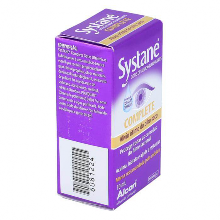 Systane Complete Colírio Lubrificante é indicado para maximizar o conforto ocular, mantendo a sensação de lubrificação ao nível dos olhos durante todo o dia. É um tratamento para o olho seco, para o alívio temporário do ardor e irritação provocados pela secura do olho. Pode ser utilizado ao longo do dia sempre que necessário para alívio dos sintomas do olho seco.