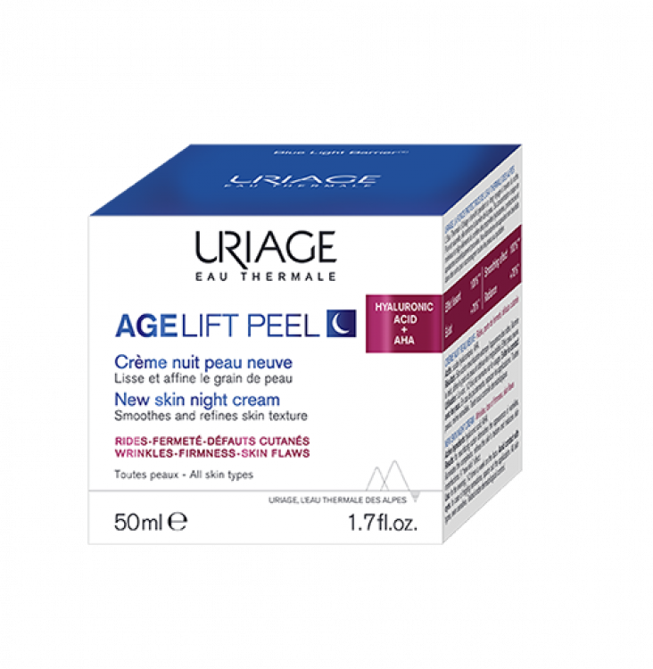 Creme de noite com propriedades antienvelhecimento e efeito peeling para uma pele mais firme, lisa e renovada ao acordar. Possui Ácido Hialurónico que atua na perda de tonicidade, diminui o aspeto das rugas marcadas, ajuda a reduzir as manchas castanhas e recupera a vitalidade e radiância. O seu efeito peeling é proveniente dos AHAs (alfahidroxiácidos), que atuam durante a noite, exfoliando suavemente a pele, para a redução das manchas escuras e imperfeições. Formulado com Água Termal de Uriage, AHAs, Ácido Hialurónico, Esqualano Vegetal, Ceras vegetais e Glicerina. Aplicar à noite uma ou duas vezes por semana na pele do rosto limpa e seca. Evitar o contacto com os olhos. Adaptado para todos os tipos de pele, mesmo sensível.
